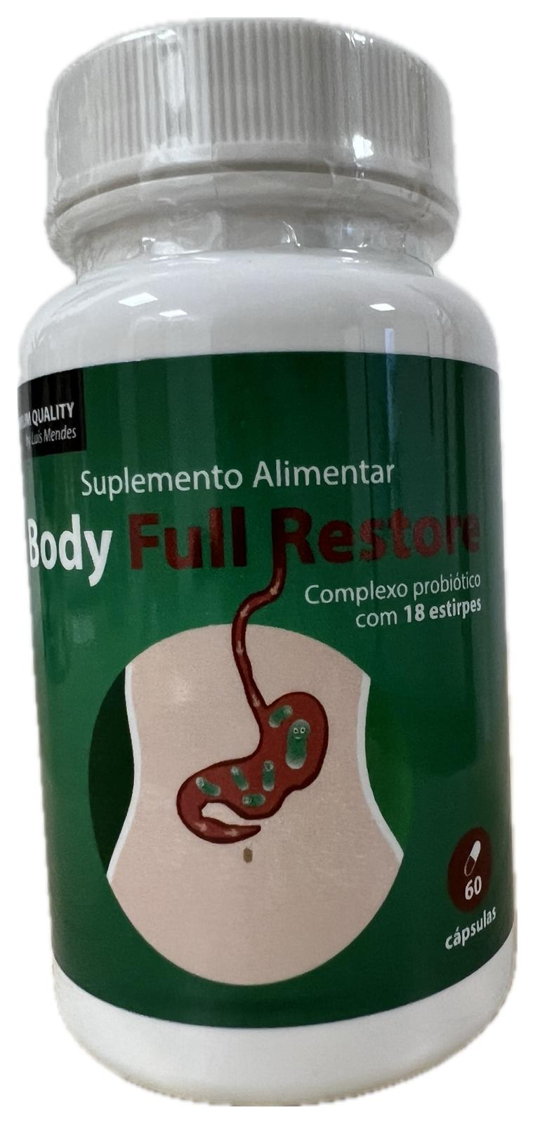 O Body Full Restore é um suplemento alimentar probiótico de alta qualidade, formulado com 18 estirpes de bactérias benéficas, que ajudam a reequilibrar a flora intestinal e a melhorar o funcionamento digestivo.